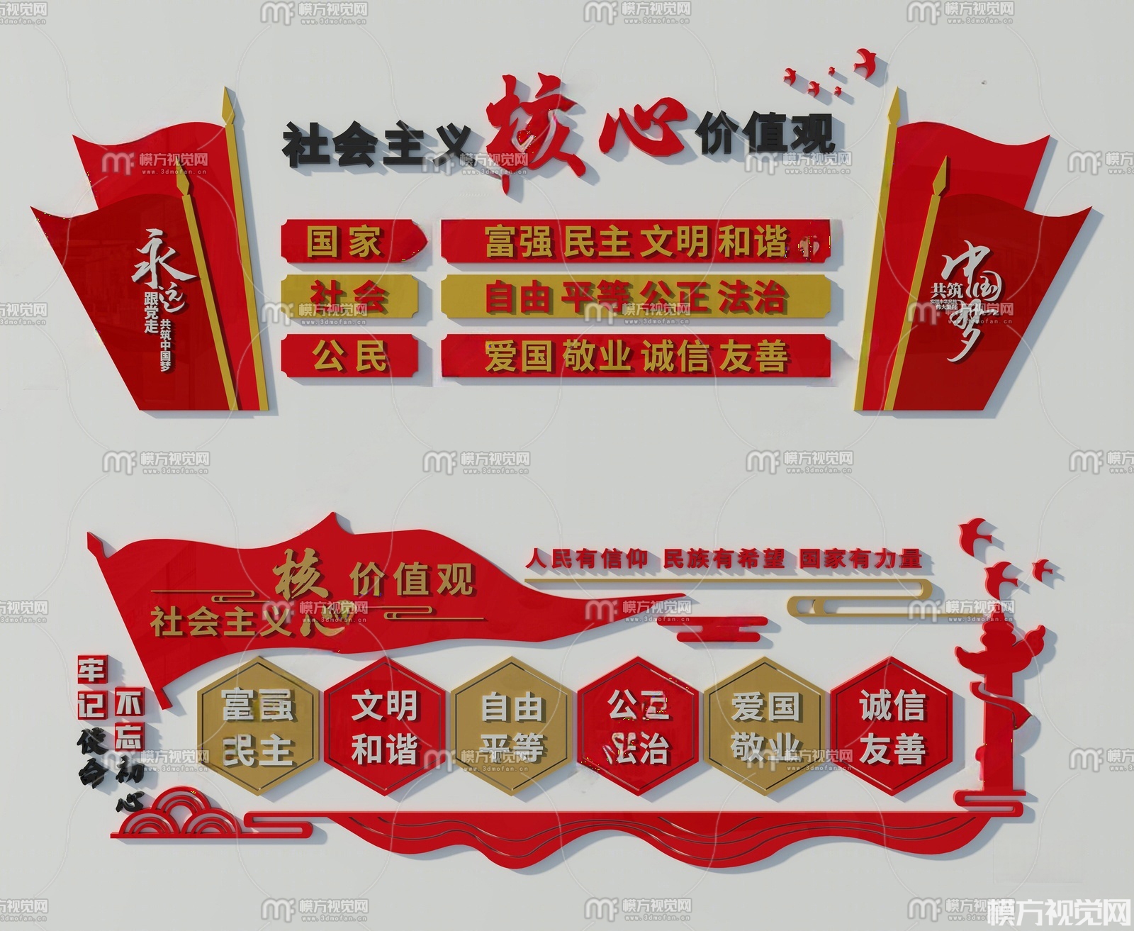 现代党建文化墙 宣传墙3D模型(ID:0033987)
