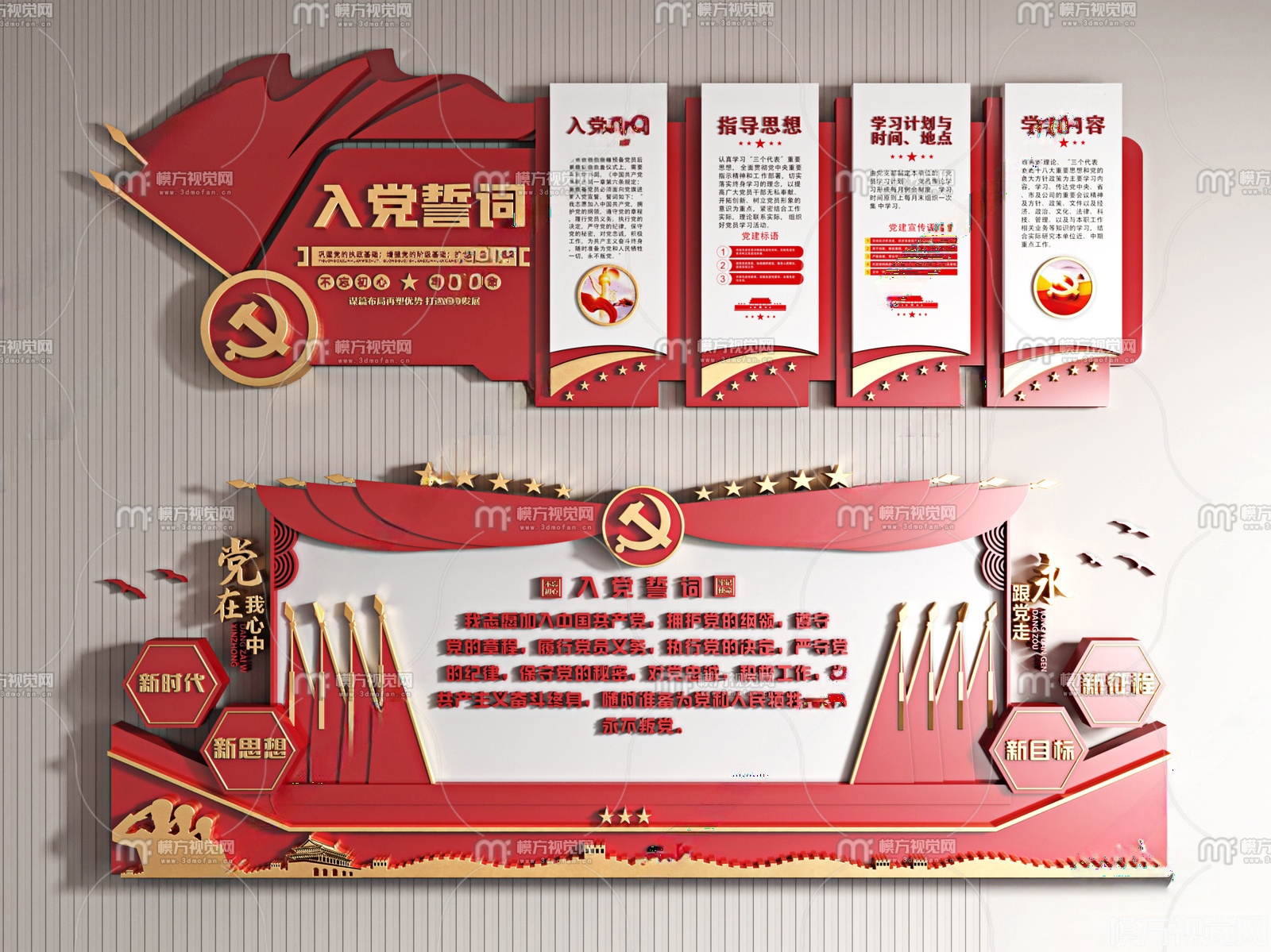 现代党建宣传墙 文化墙3D模型(ID:0033988)