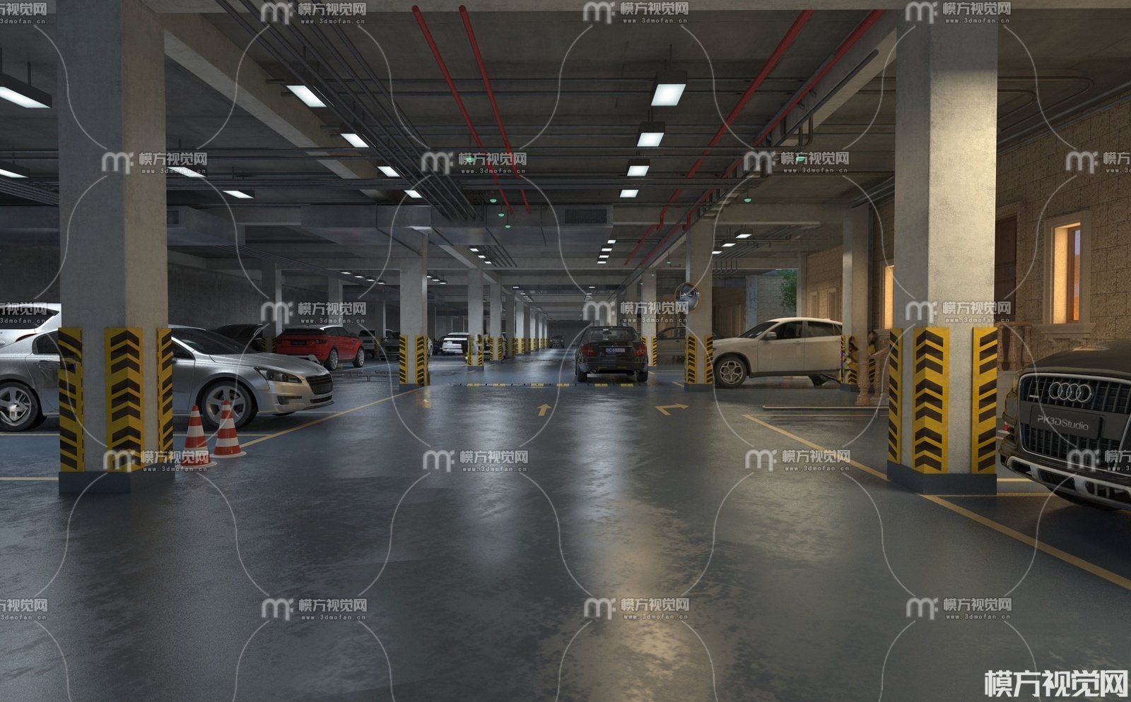 现代地下车库3D模型(ID:0034036)