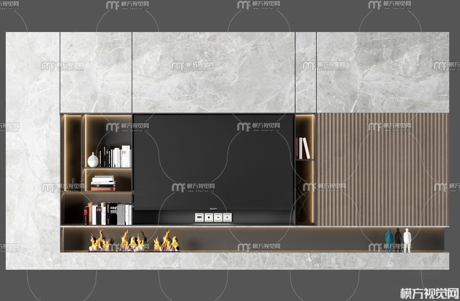 现代电视背景墙3D模型(ID:0034089)