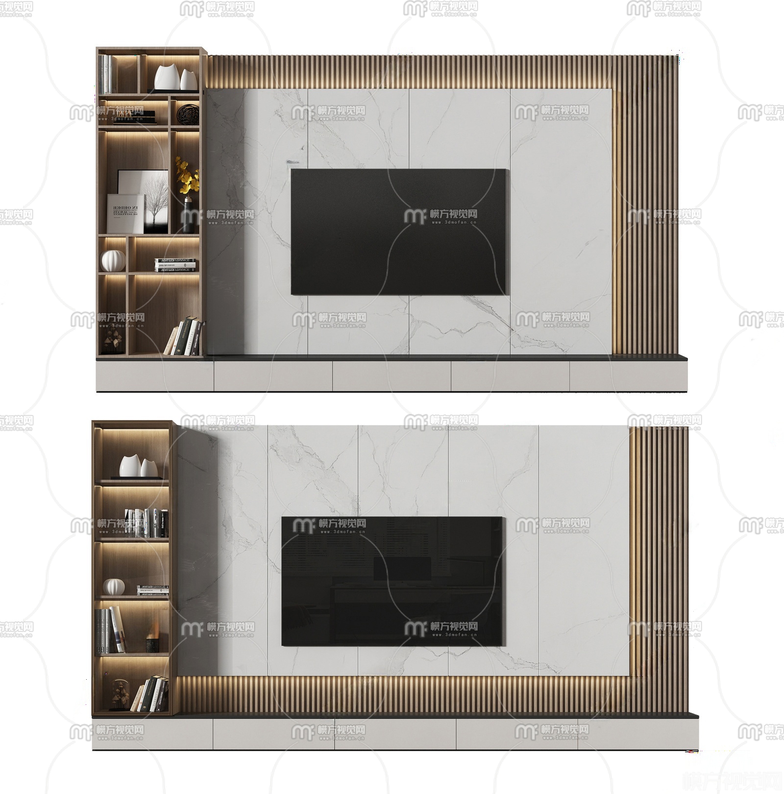 现代电视背景墙3D模型(ID:0034091)