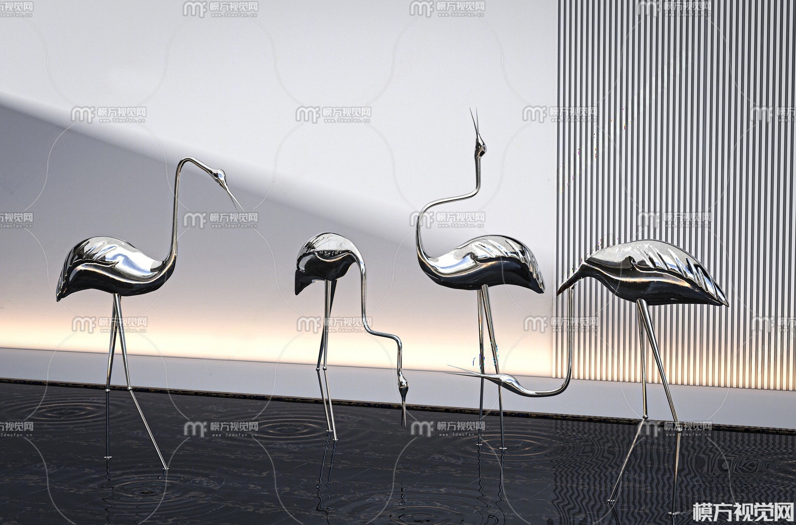 现代鹤雕塑摆件3D模型(ID:0034160)