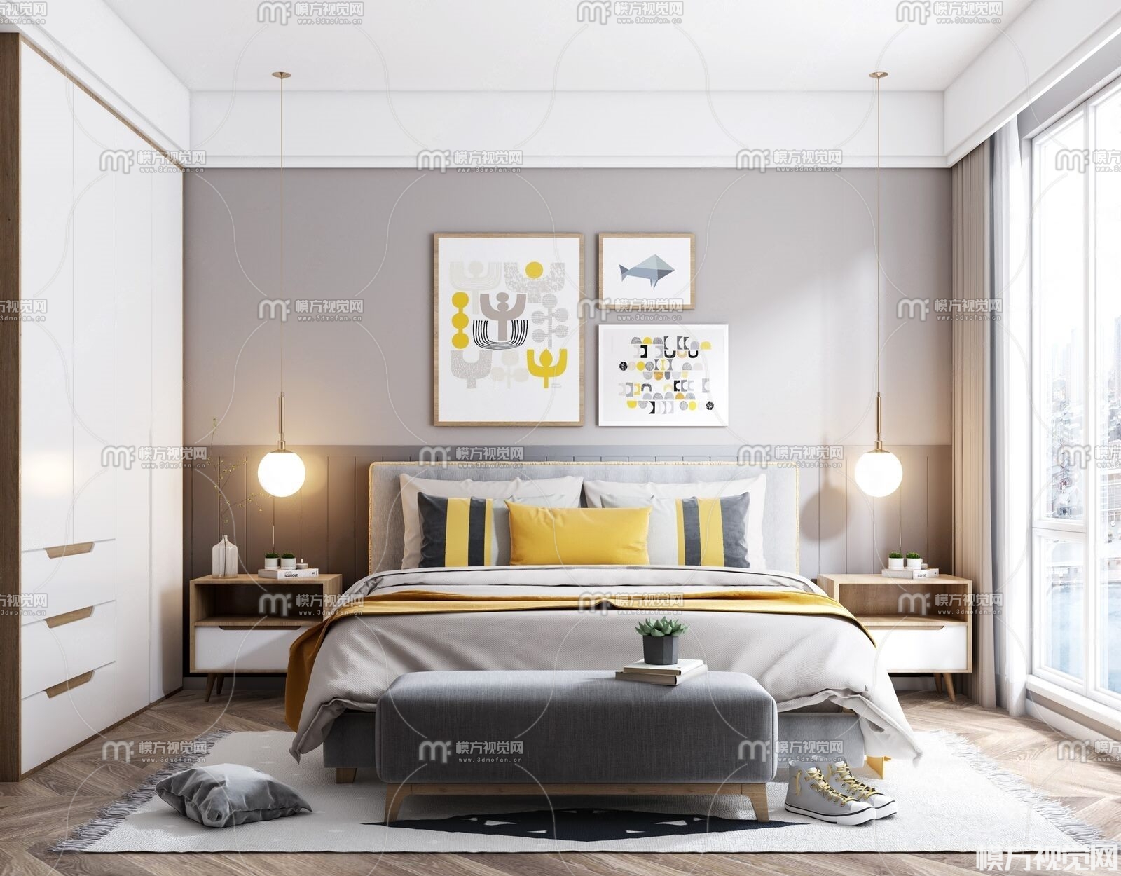 北欧卧室3D模型(ID:0003421)