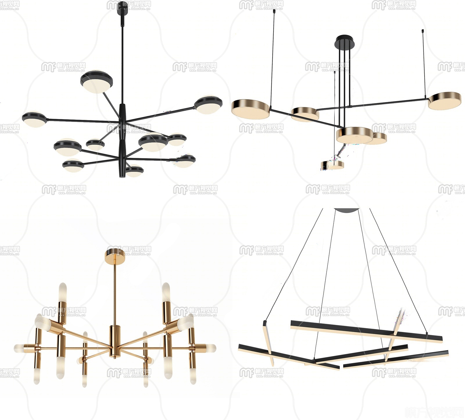 现代轻奢吊灯组合3D模型(ID:0034222)