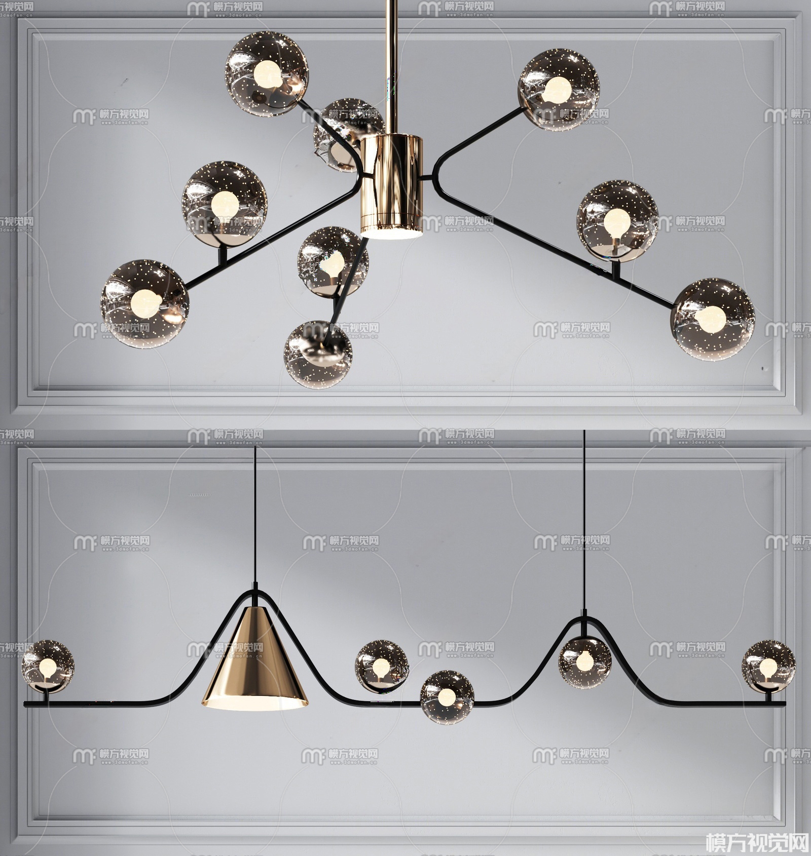 现代轻奢吊灯组合3D模型(ID:0034227)