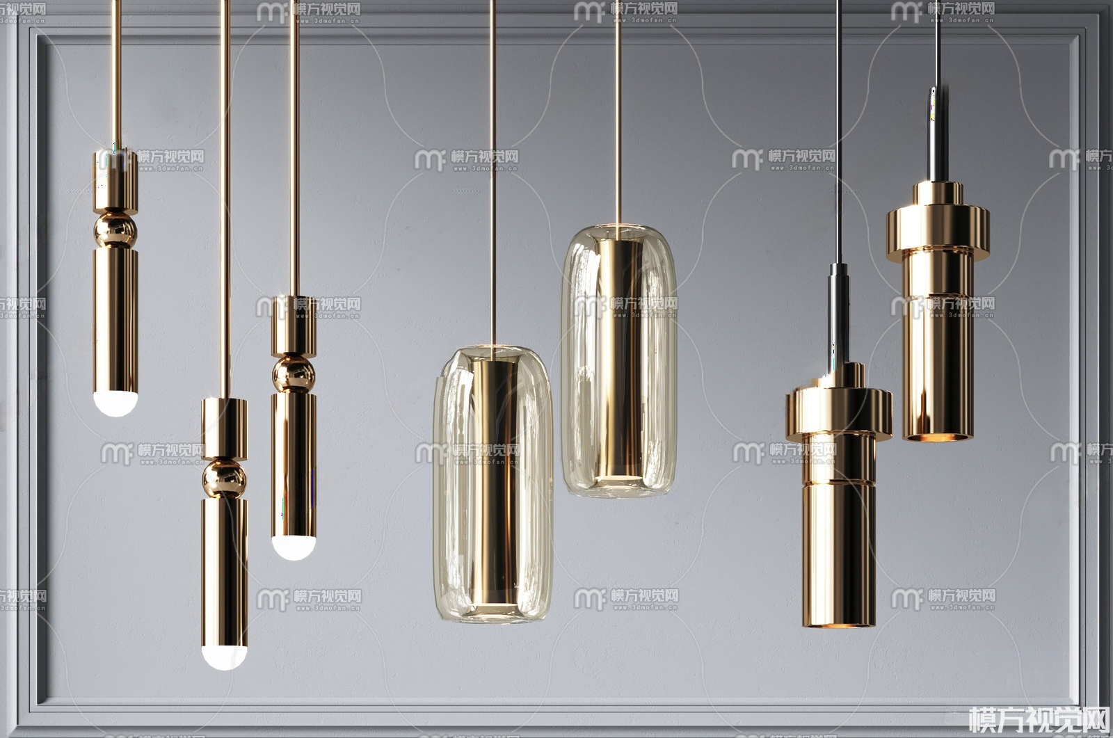 现代轻奢吊灯组合3D模型(ID:0034337)