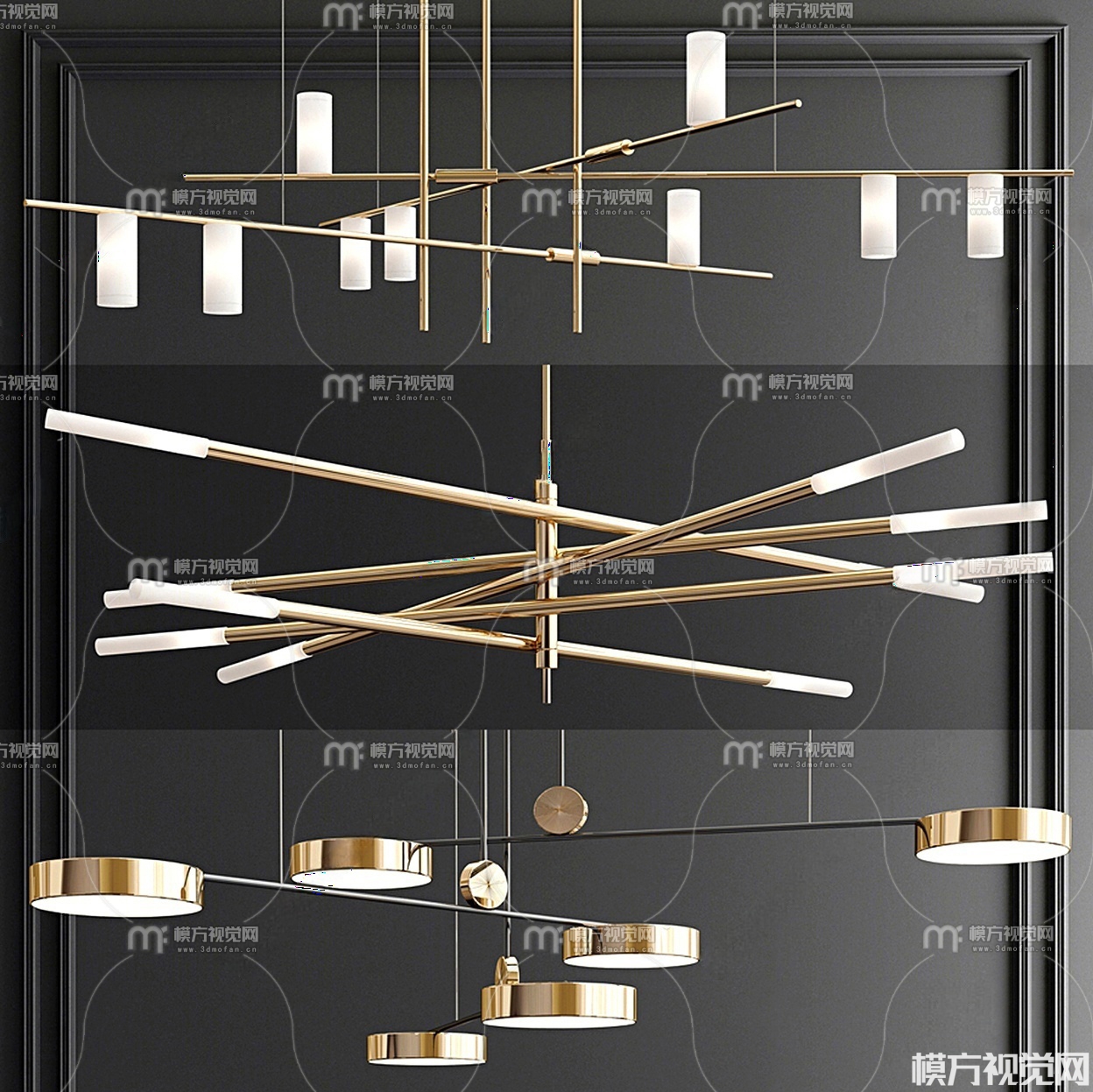 现代轻奢吊灯组合3D模型(ID:0034350)