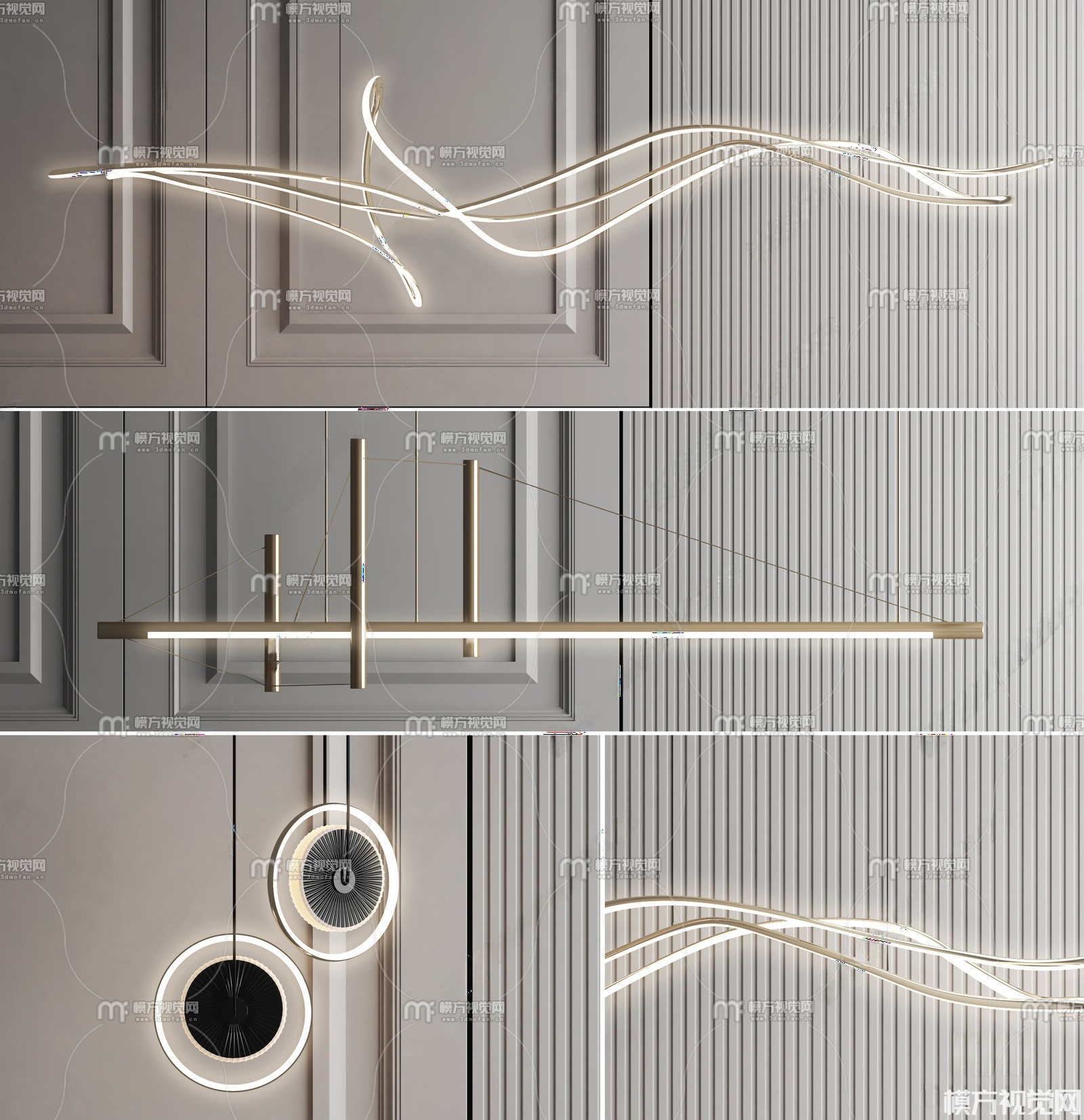 现代吊灯组合3D模型(ID:0034354)