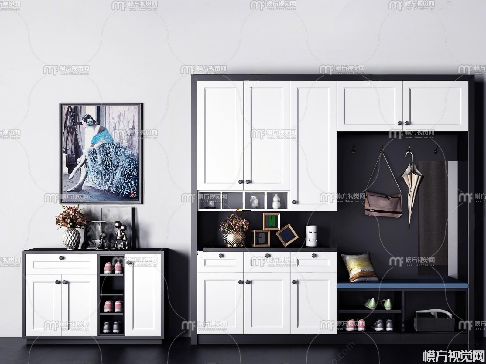 现代多功能实木鞋柜3D模型(ID:0034412)