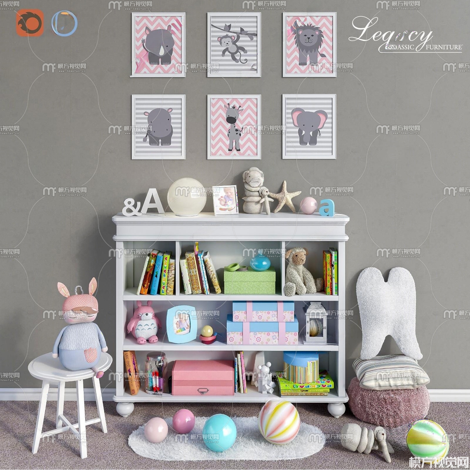 现代儿童玩具置物架 玩具柜3D模型(ID:0034449)