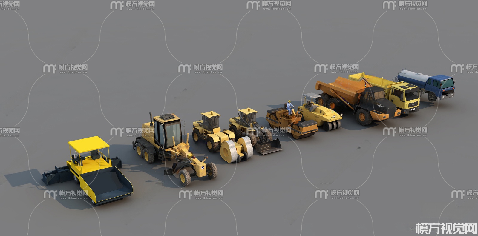 现代工程车 压路机 修路机3D模型(ID:0034514)