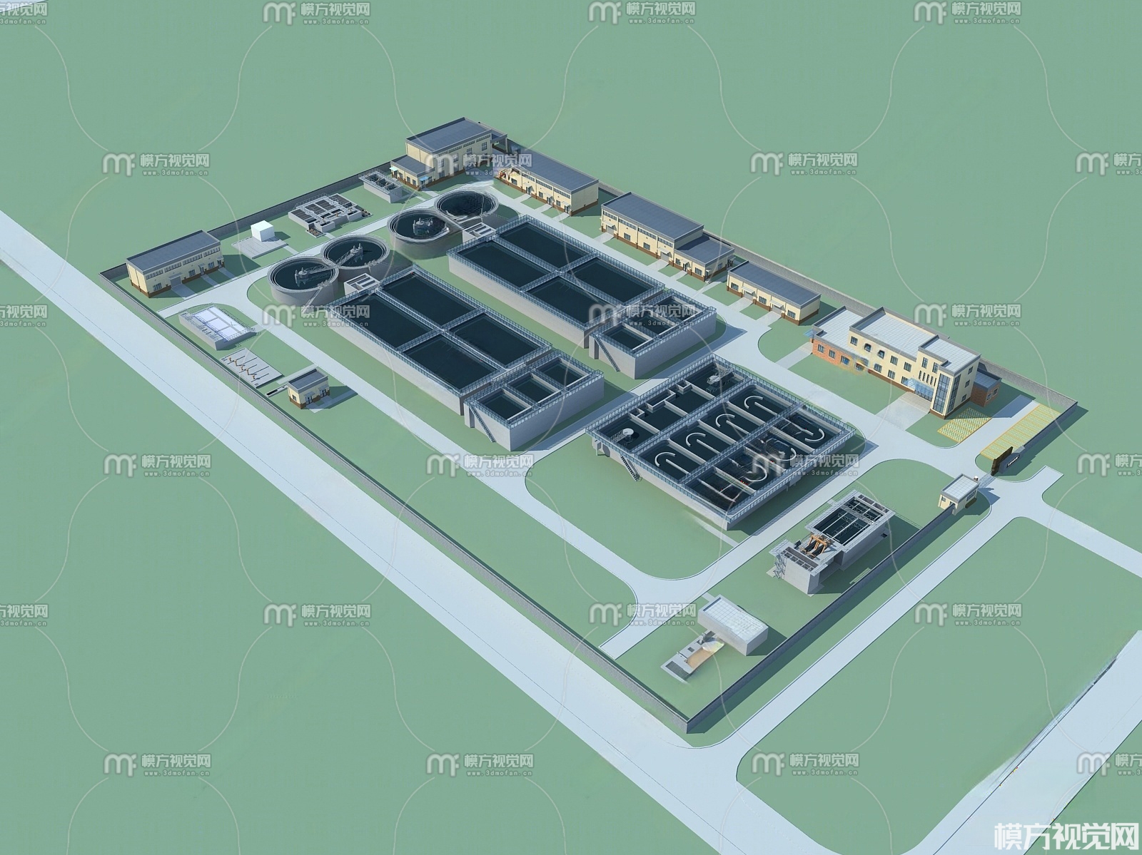 现代工业厂房鸟瞰3D模型(ID:0034518)
