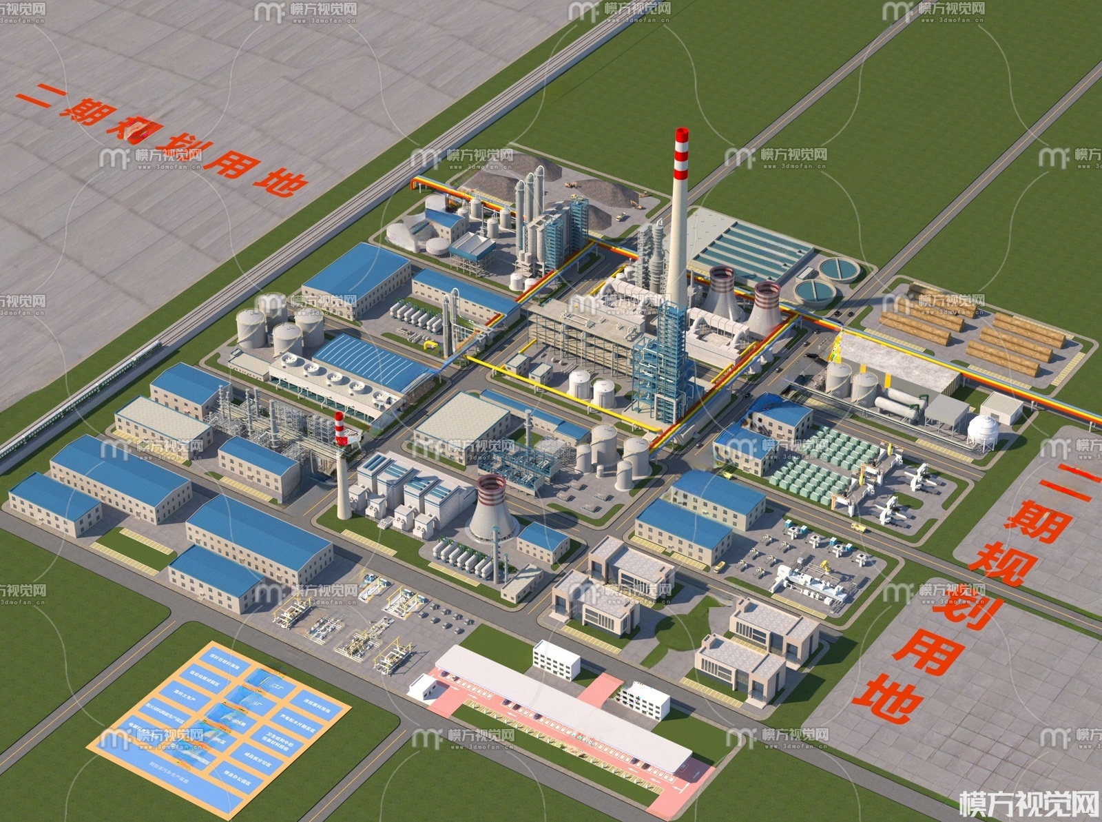 现代工业厂房规划鸟瞰3D模型(ID:0034519)