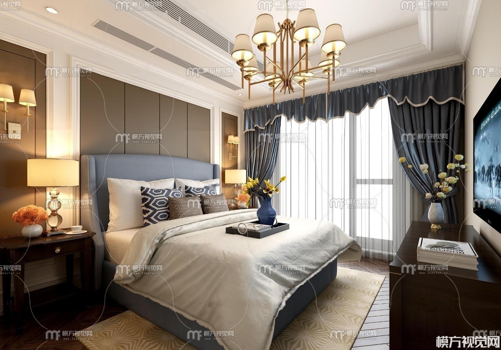 美式卧室3D模型(ID:0003453)