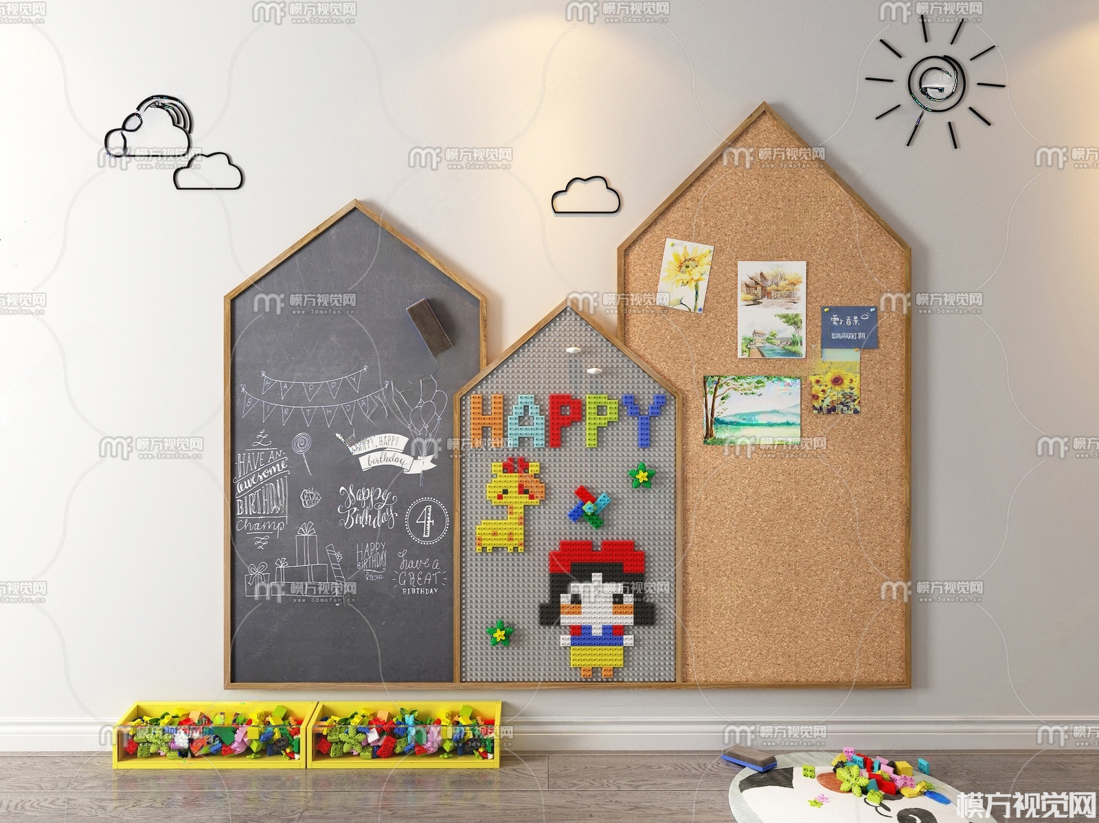 现代积木软木板墙玩具3D模型(ID:0034556)