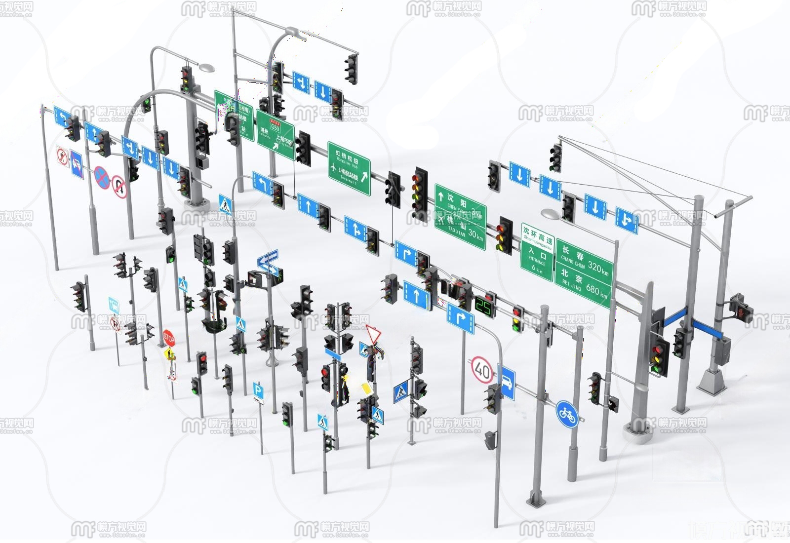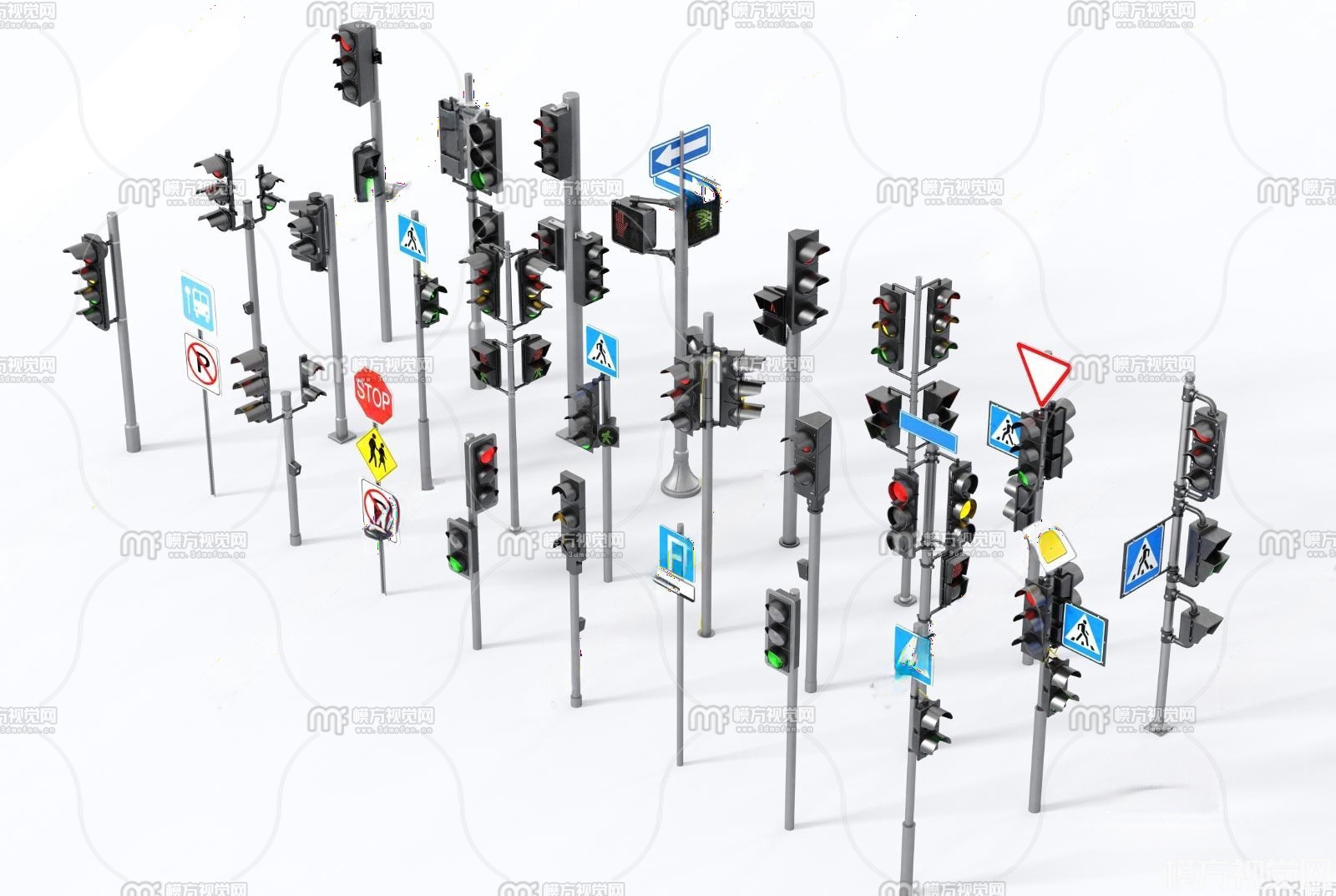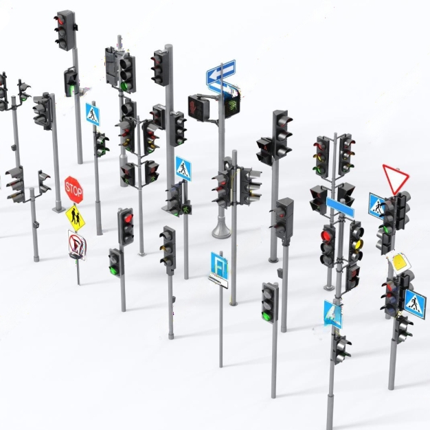 现代交通信号灯 红绿灯3D模型(ID:0034559)