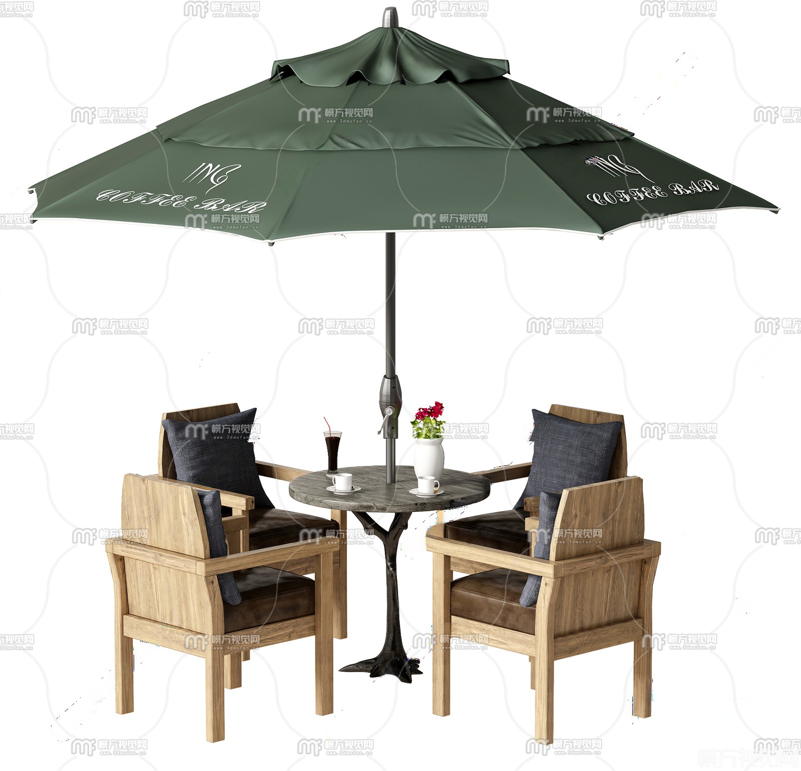 现代户外休闲桌椅 遮阳伞3D模型(ID:0034567)