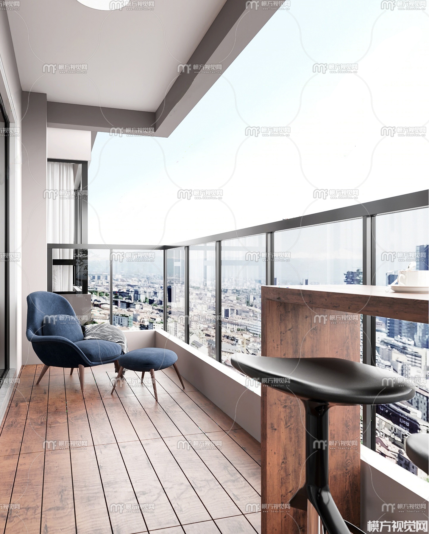 现代家居阳台3D模型(ID:0034611)