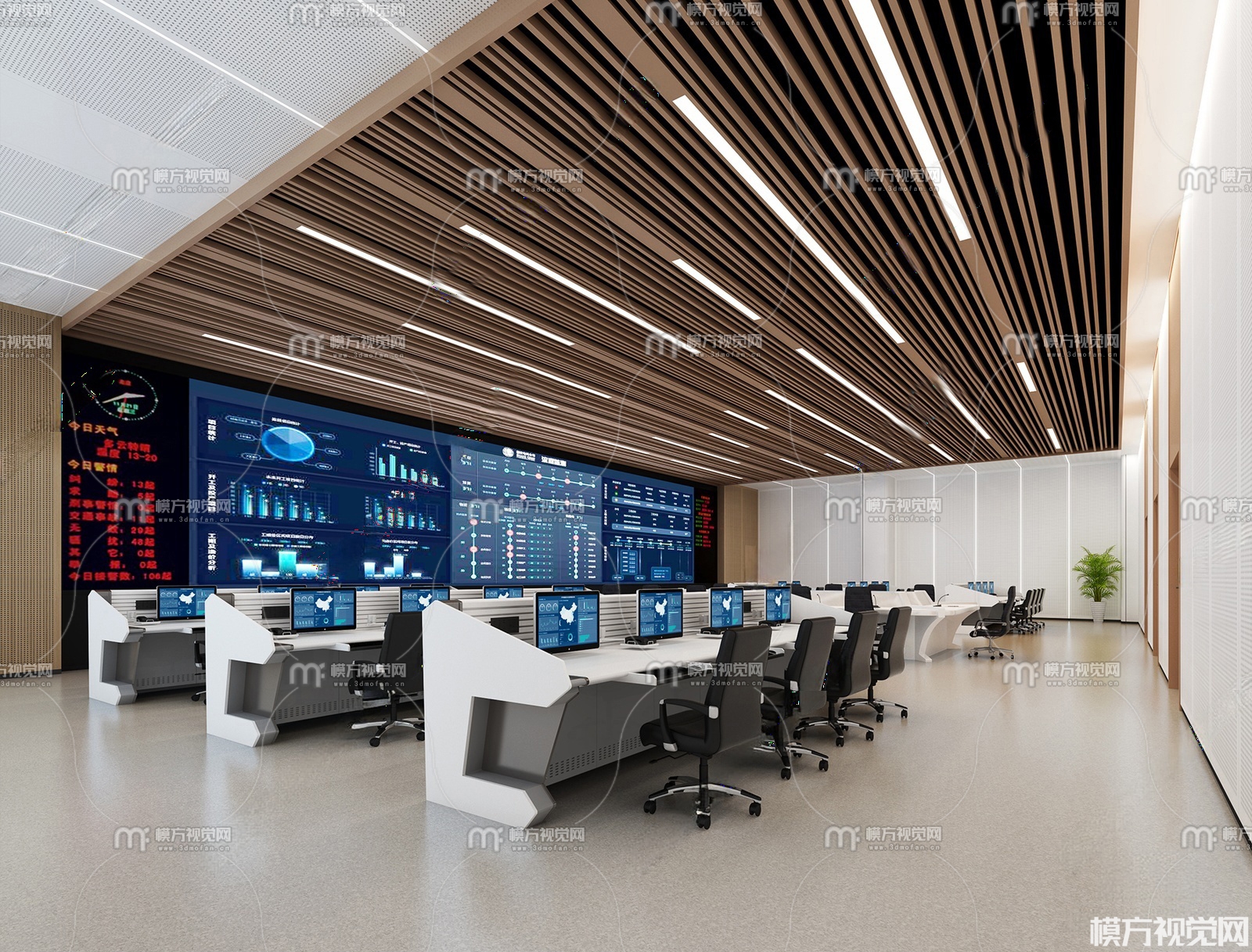 现代监控中心指挥室3D模型(ID:0034630)
