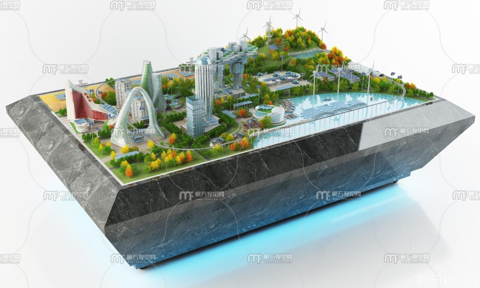 现代建筑规划楼盘 沙盘3D模型(ID:0034637)