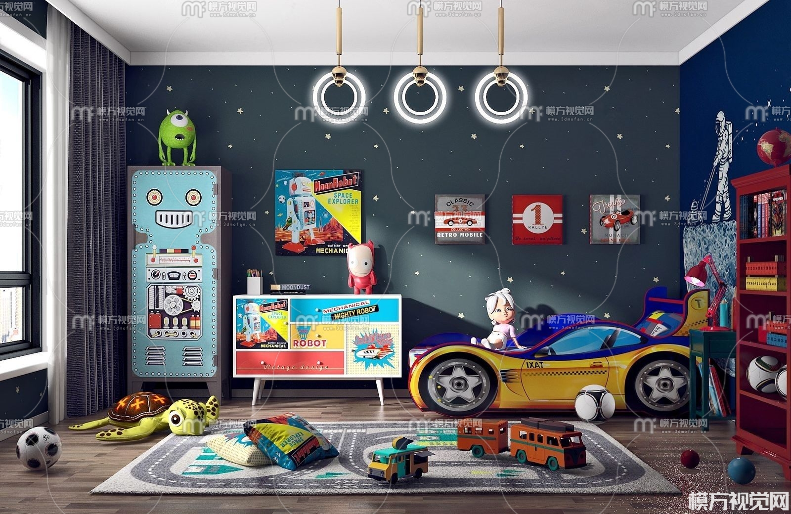 现代儿童房男孩房3D模型(ID:0003471)
