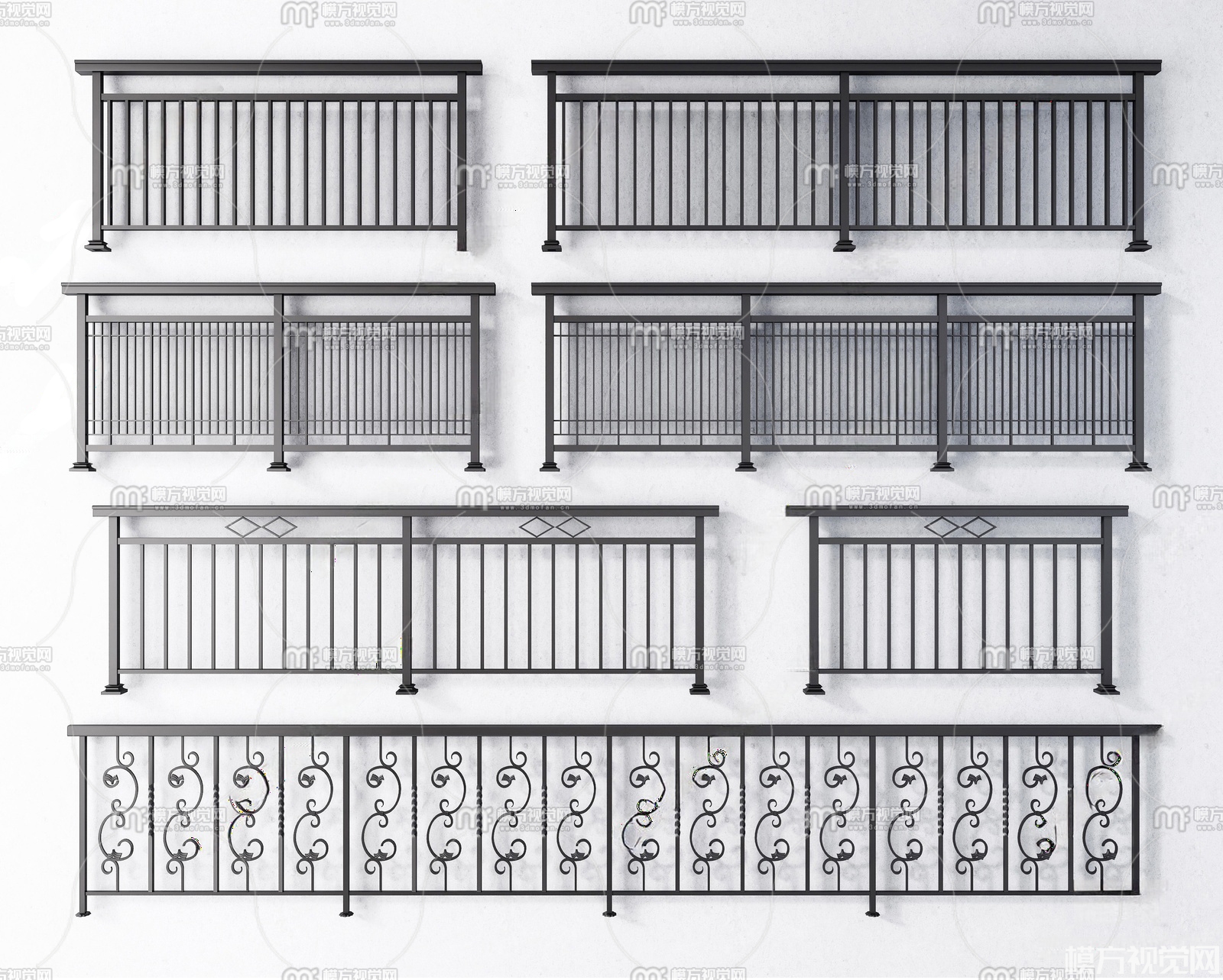 现代铁艺栏杆组合3D模型(ID:0034741)