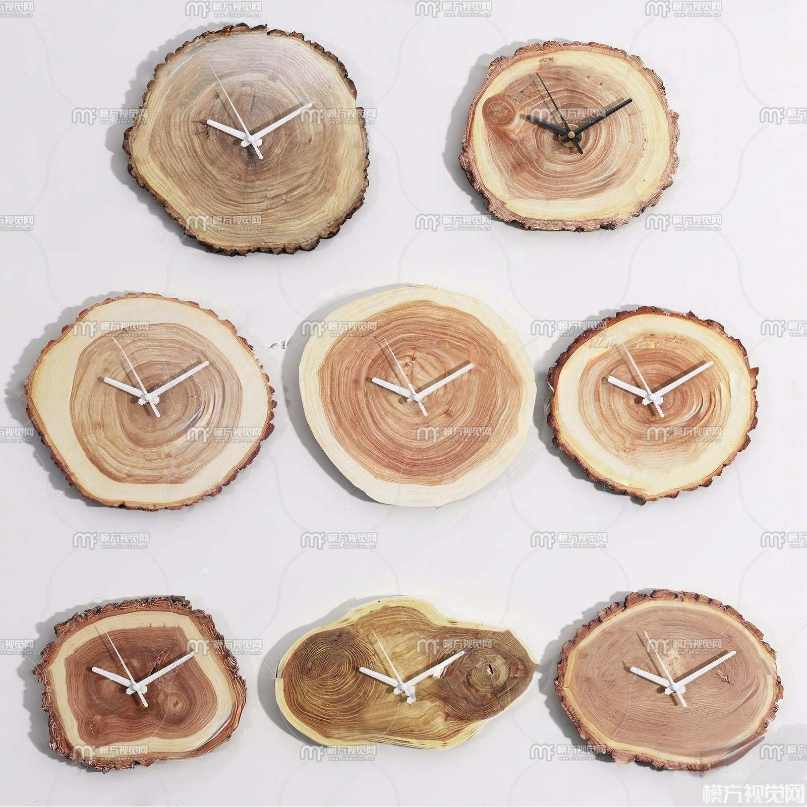 现代木纹挂钟挂件组合3D模型(ID:0034831)