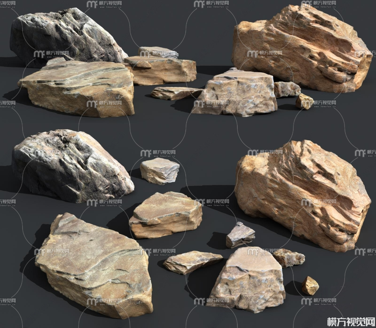 石头 岩石 石块3D模型(ID:0034944)