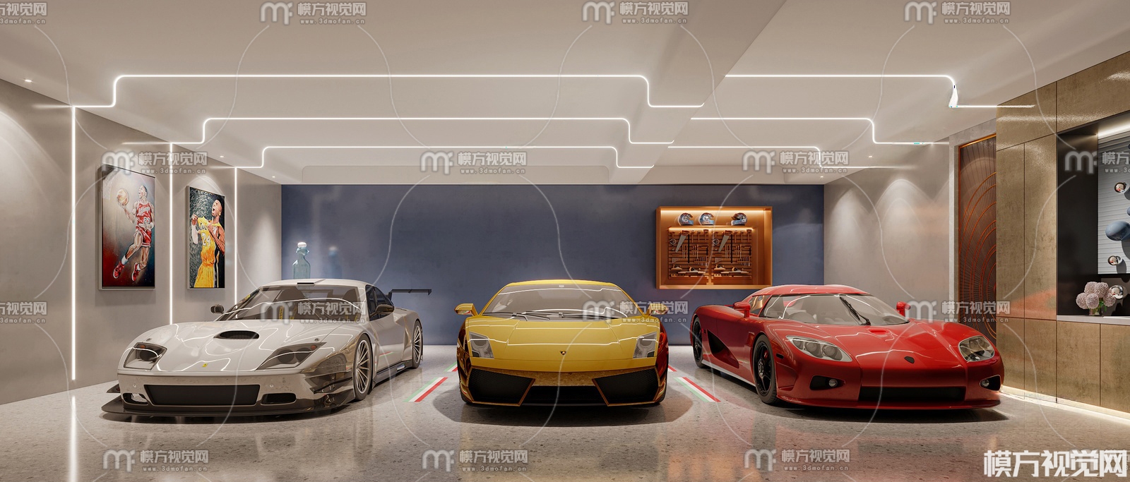 现代室内停车场3D模型(ID:0034967)