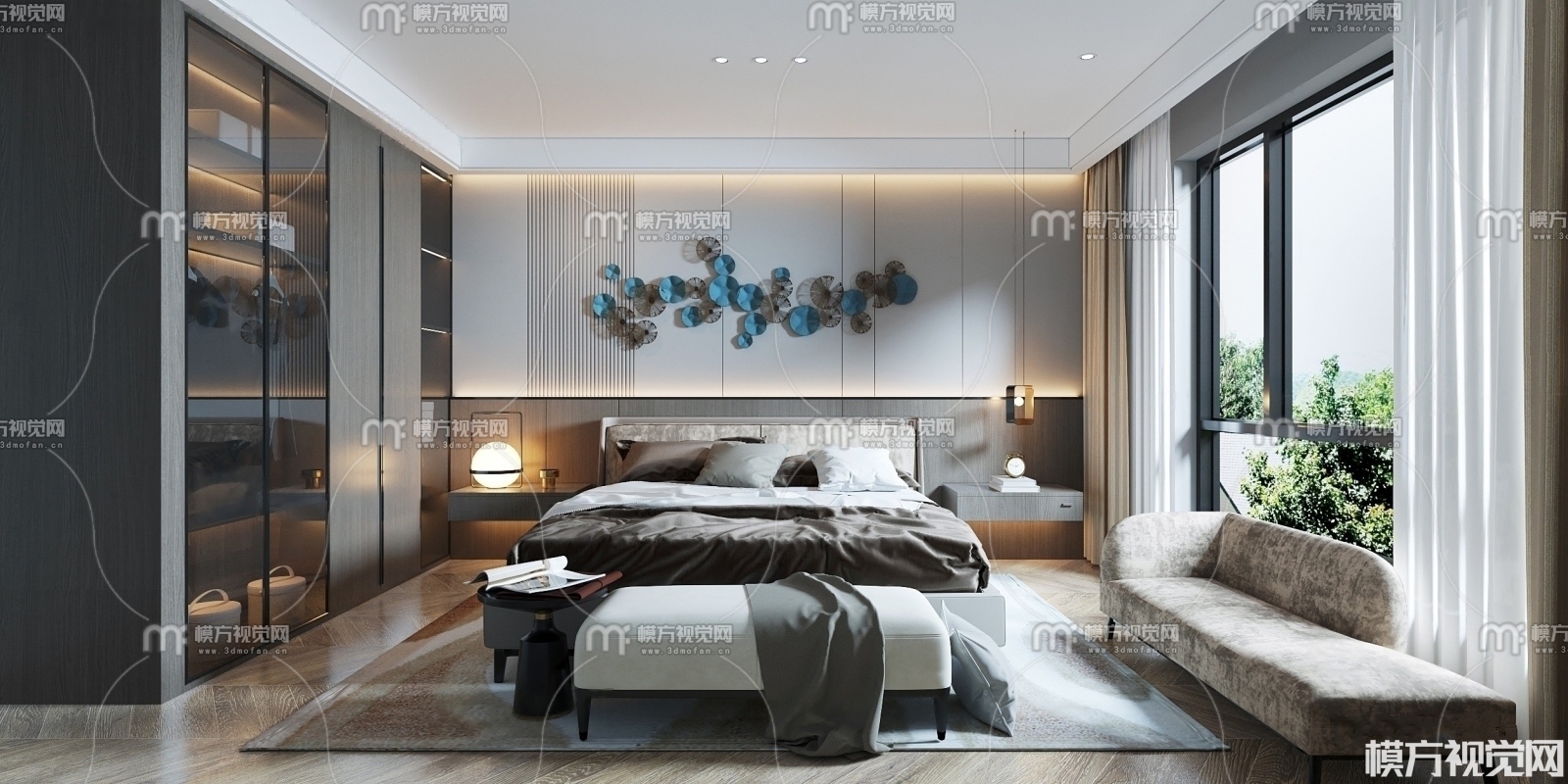 现代轻奢卧室主卧3D模型(ID:0003513)
