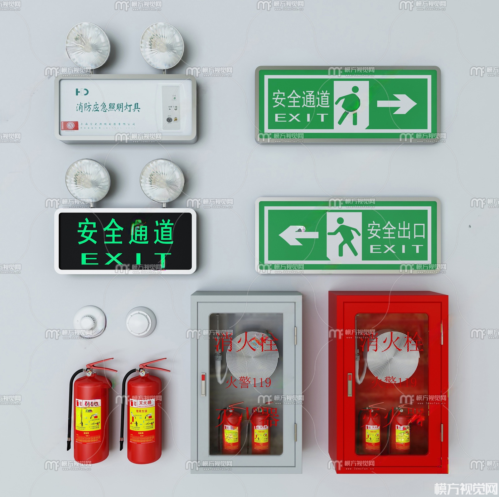 消防器材 灭火器 应急灯3D模型(ID:0035246)