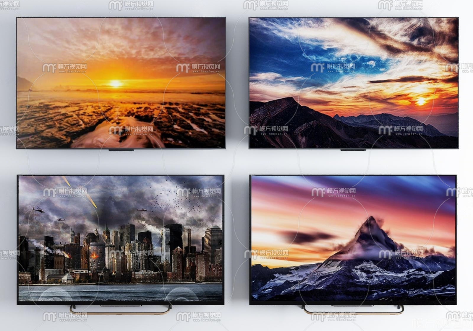 现代液晶电视机显示器组合3D模型(ID:0035310)