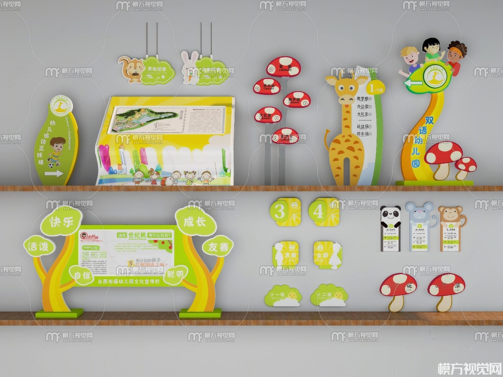 现代幼儿园指示牌3D模型(ID:0035408)
