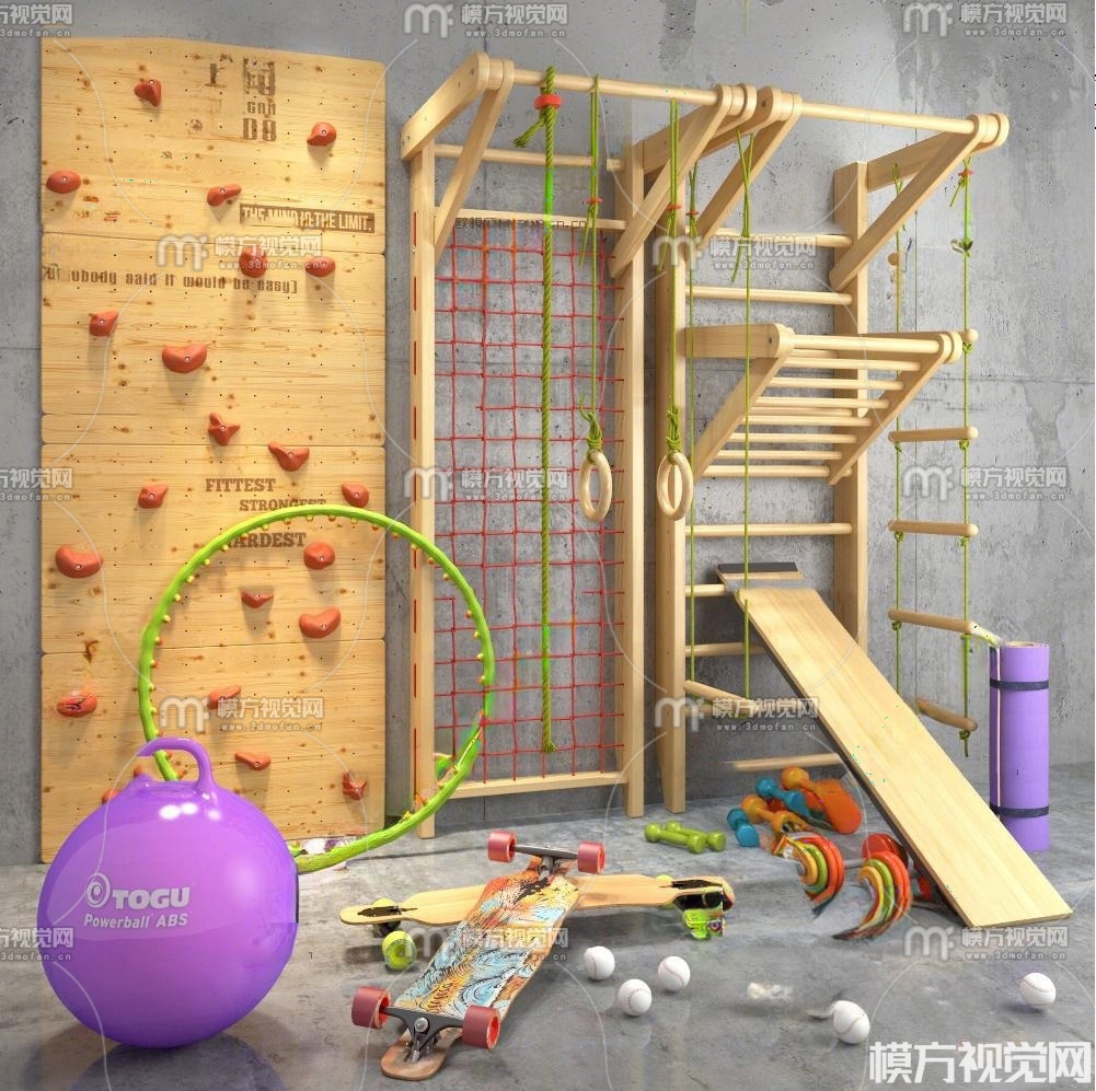 现代瑜伽球滑板攀岩墙3D模型(ID:0035417)