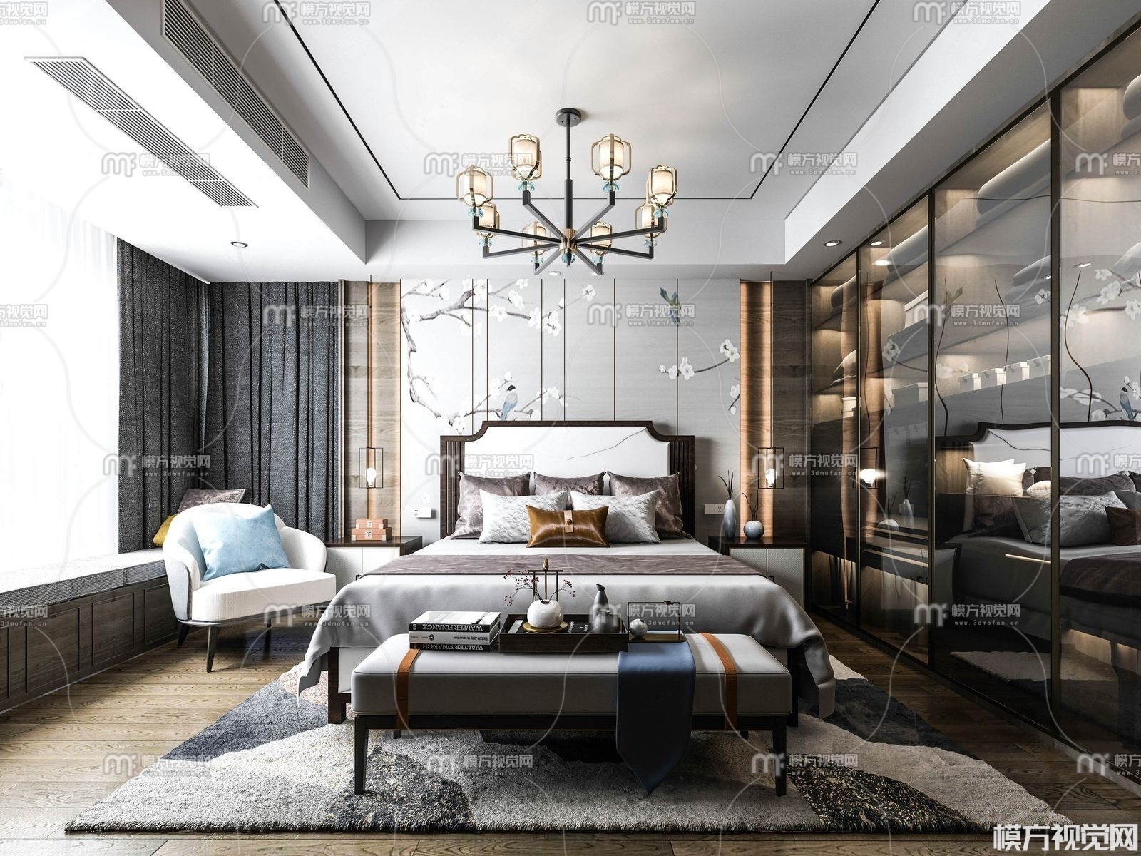 新中式卧室3D模型(ID:0003549)
