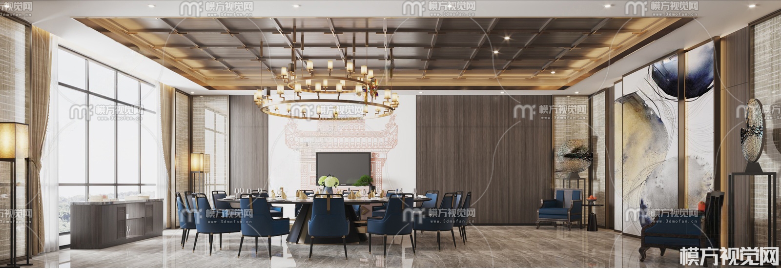 新中式包厢3D模型(ID:0035541)