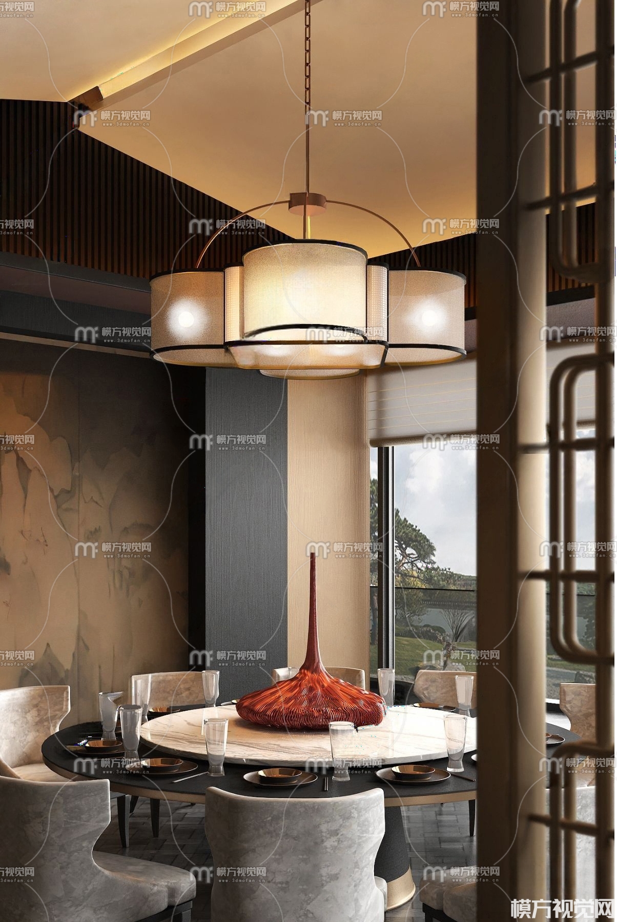 新中式餐厅包间3D模型(ID:0035564)