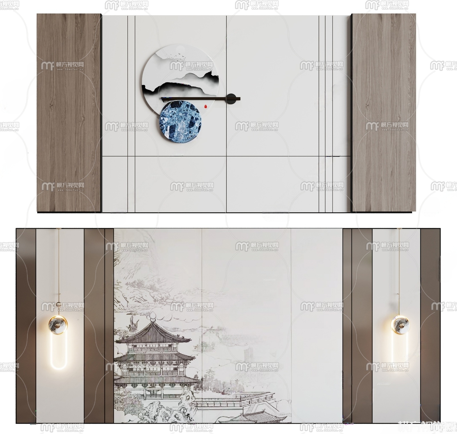 新中式床头背景墙3D模型(ID:0035576)