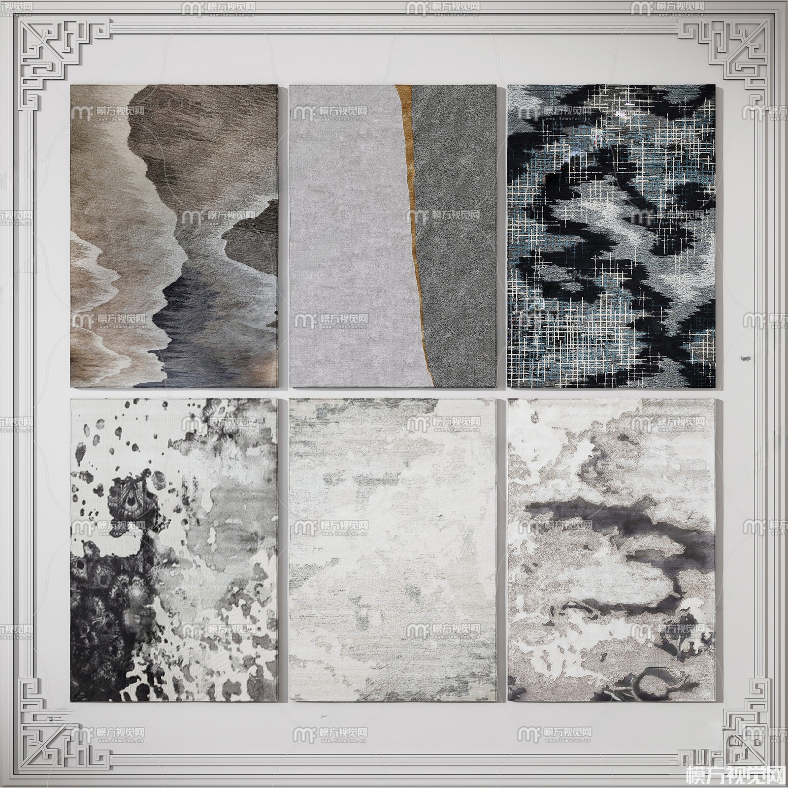 新中式地毯组合3D模型(ID:0035583)
