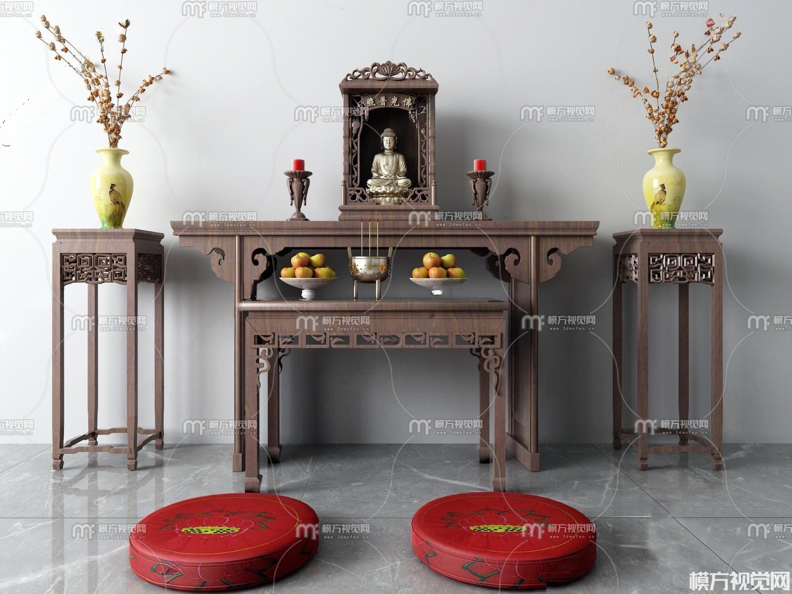 新中式佛龛 佛像3D模型(ID:0035595)