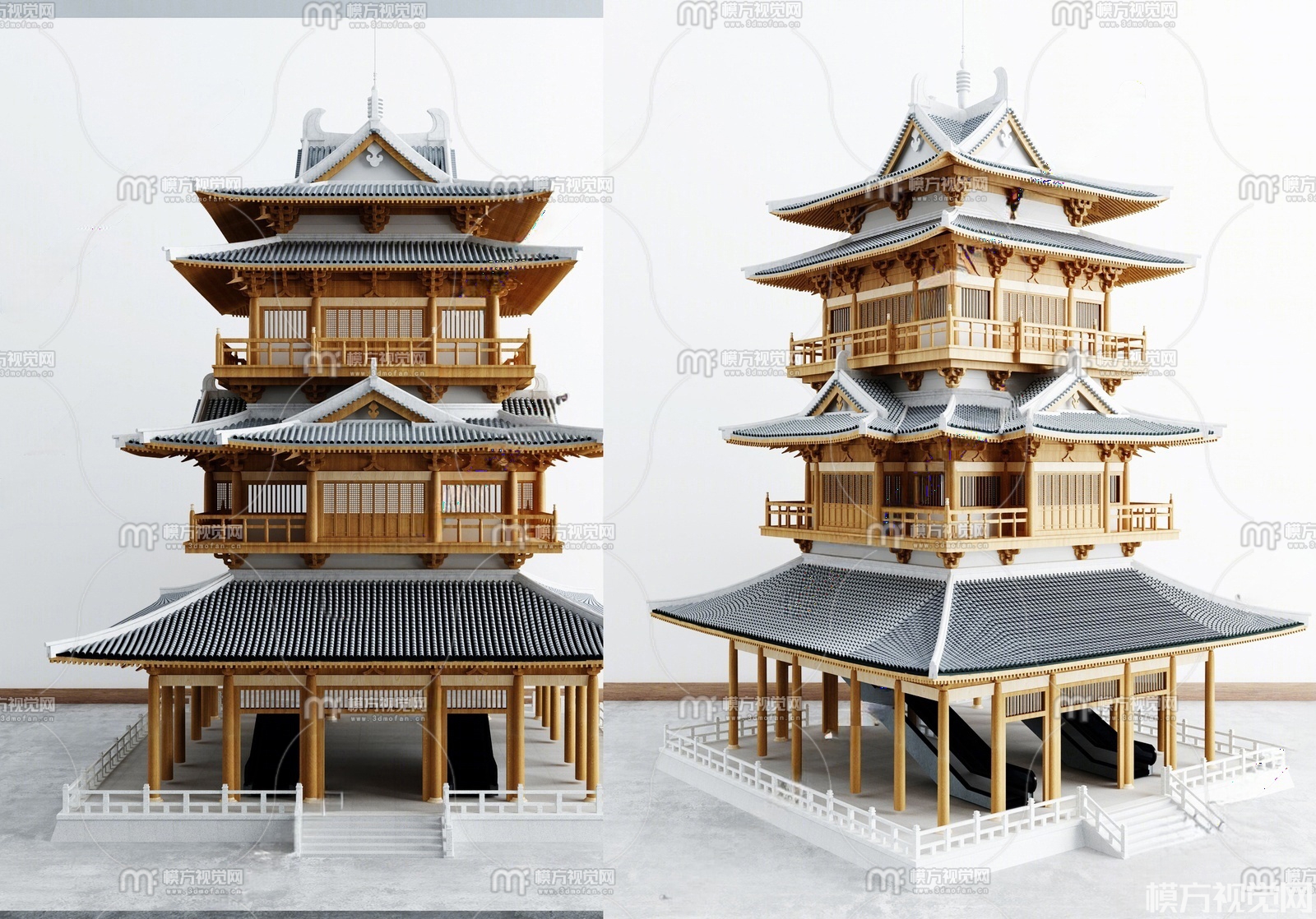 新中式古建阁楼牌坊3D模型(ID:0035600)