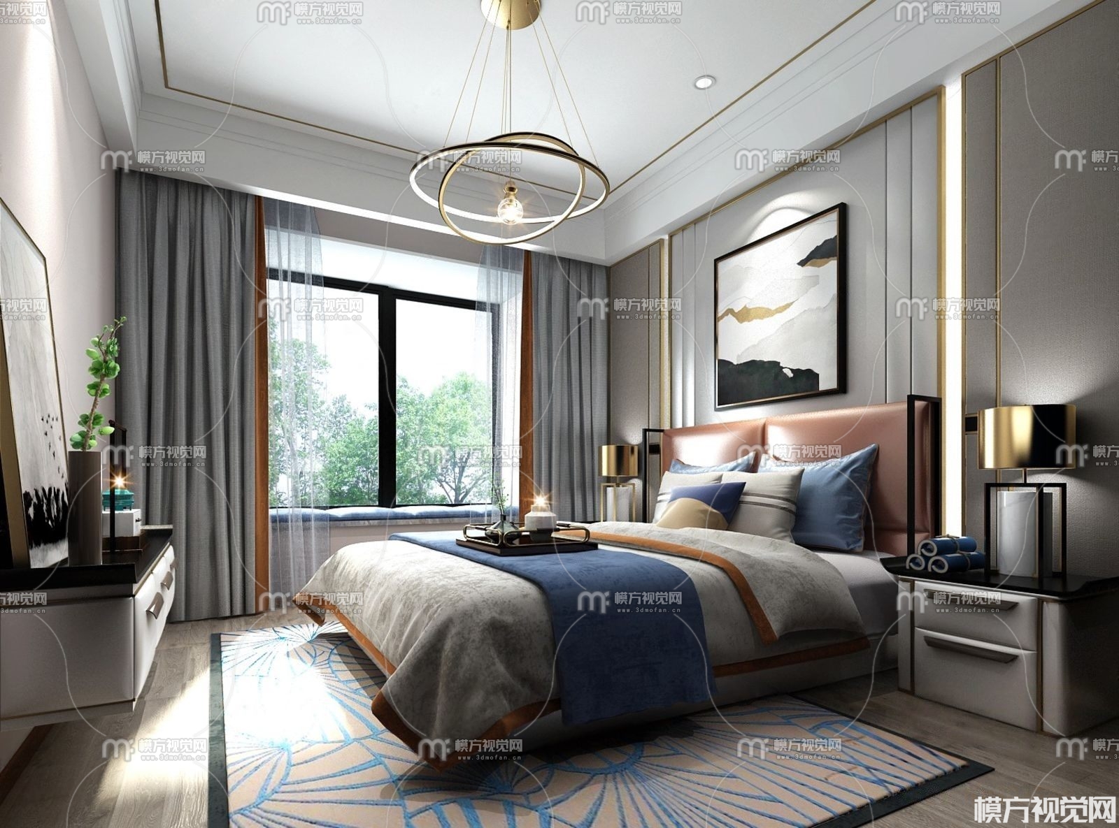 新中式卧室3D模型(ID:0003565)