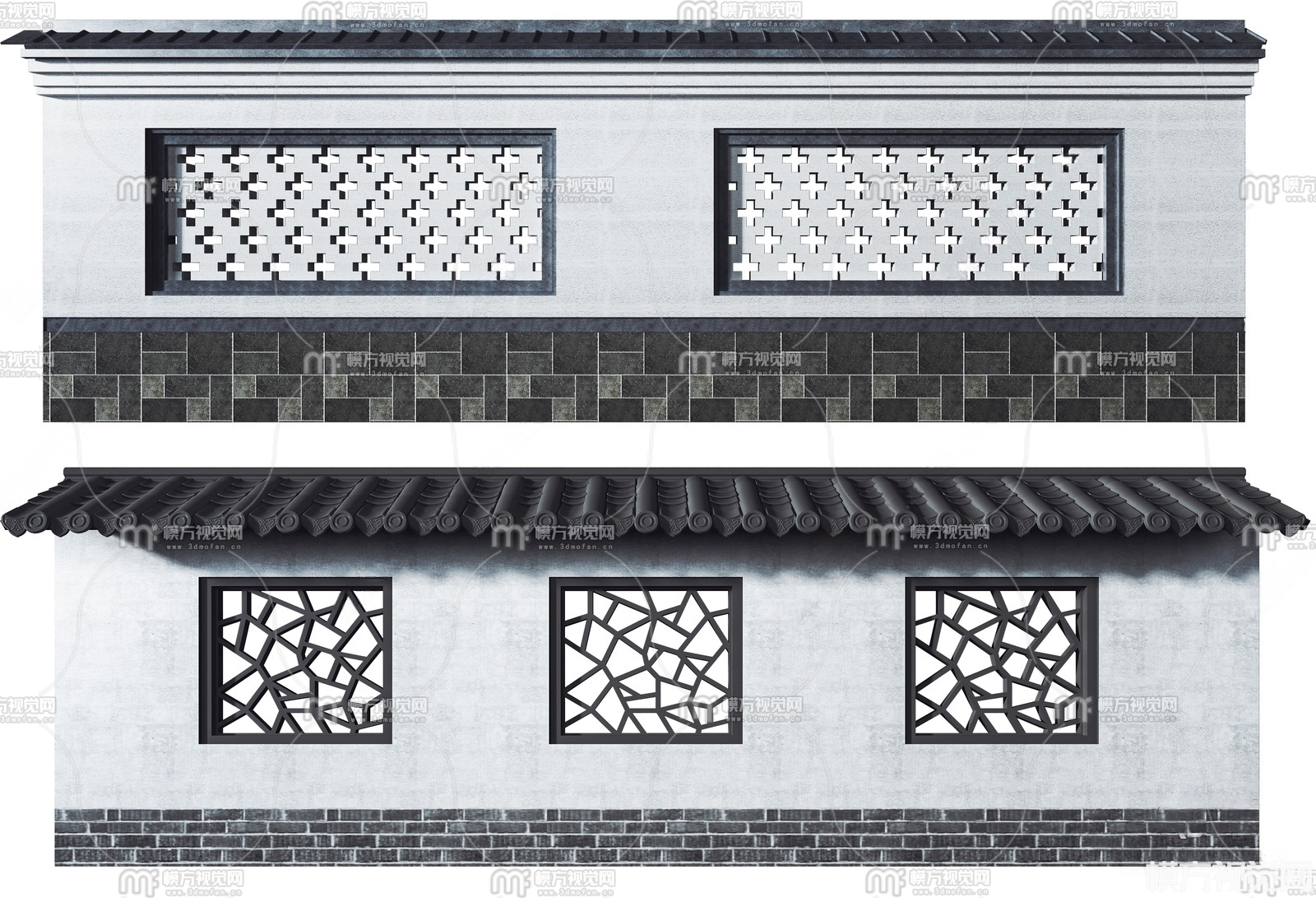 新中式景墙围墙3D模型(ID:0035691)
