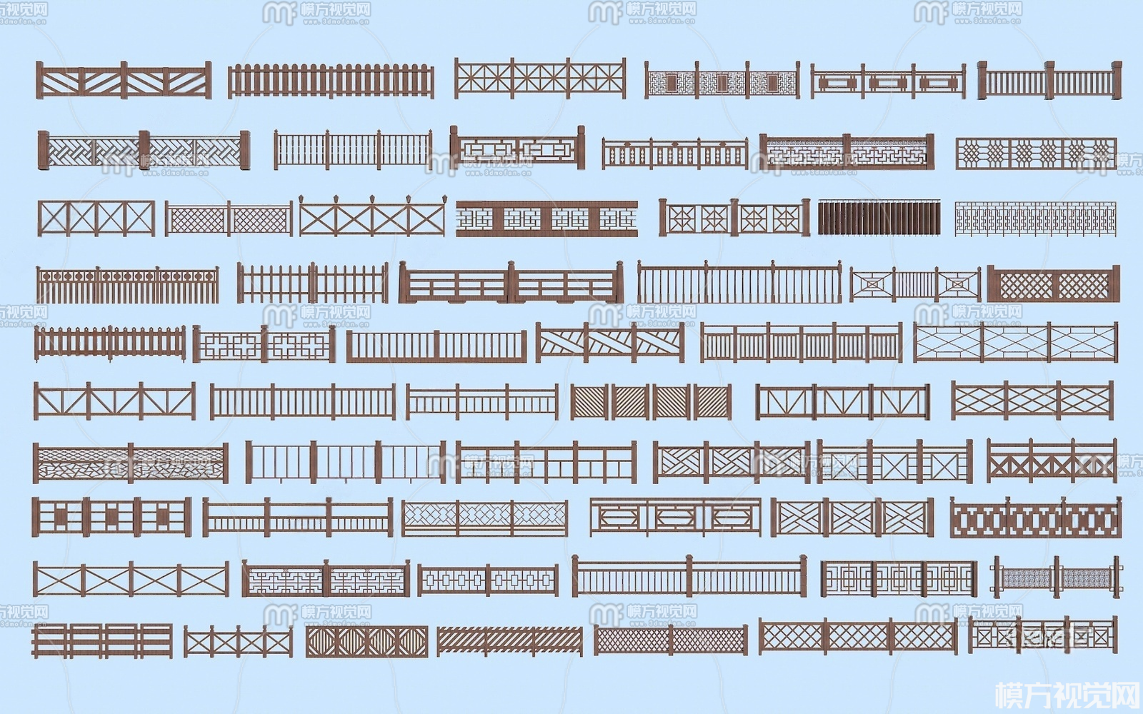 新中式栏杆3D模型(ID:0035696)