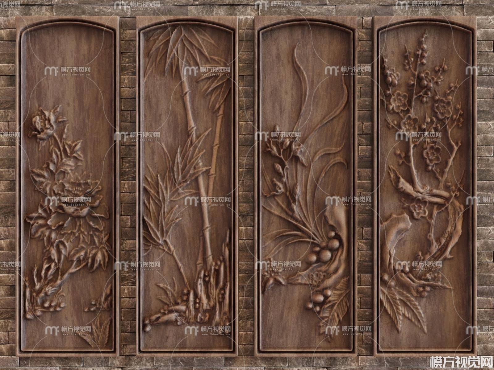 新中式梅兰竹菊墙饰3D模型(ID:0035708)