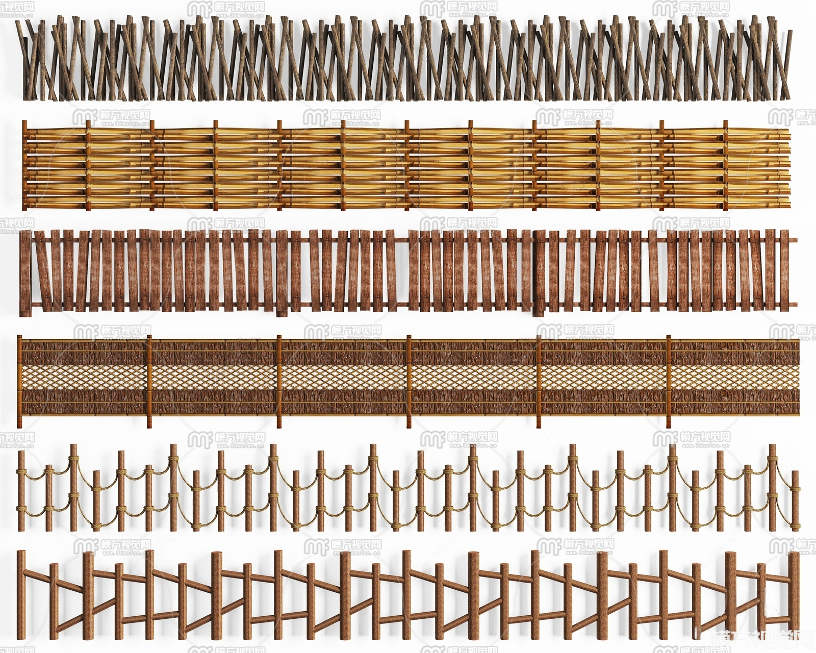 新中式木篱笆 栅栏3D模型(ID:0035716)