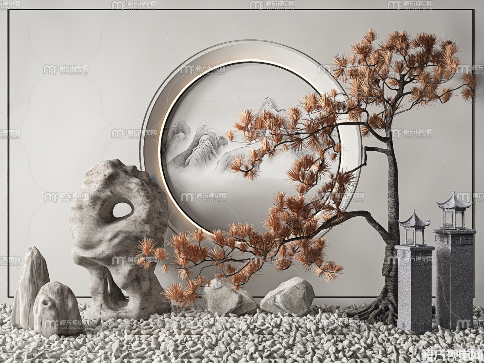 新中式松树 假山 园艺小品3D模型(ID:0035742)