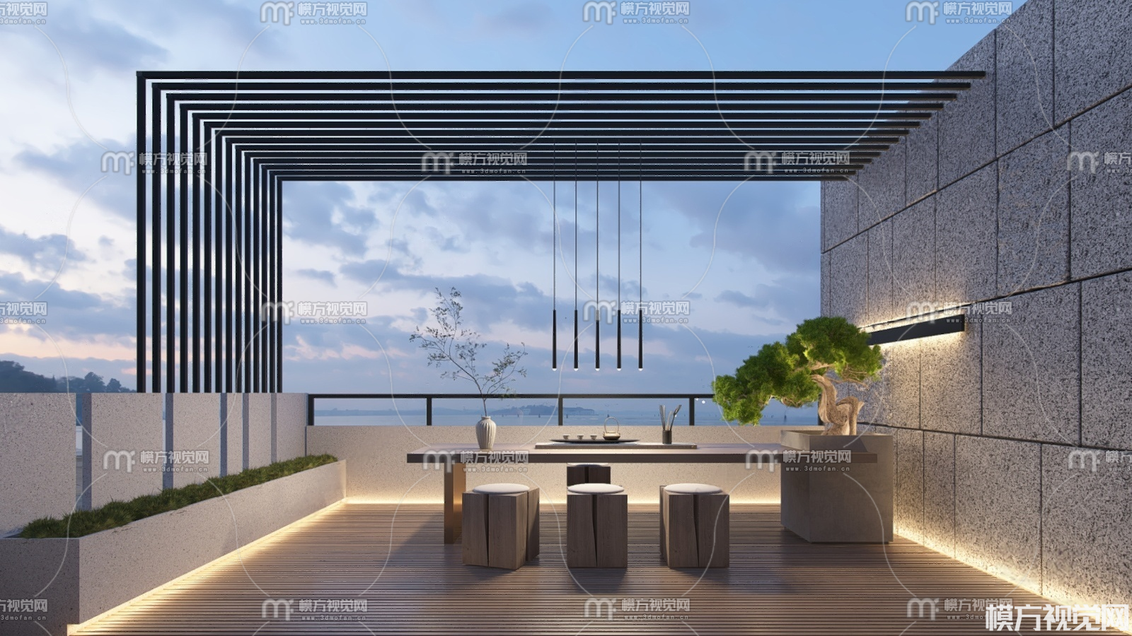新中式休闲阳台3D模型(ID:0035755)