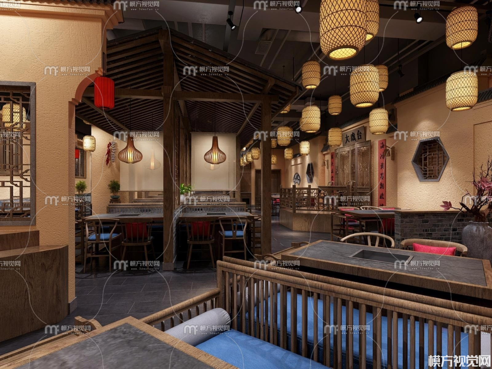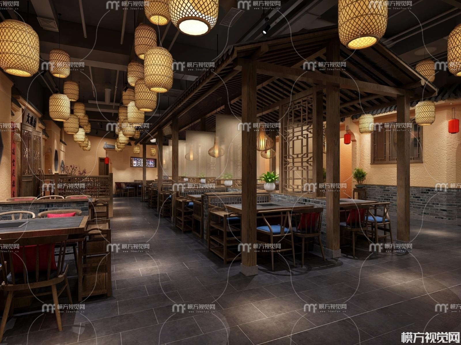 中式餐厅3D模型(ID:0035823)