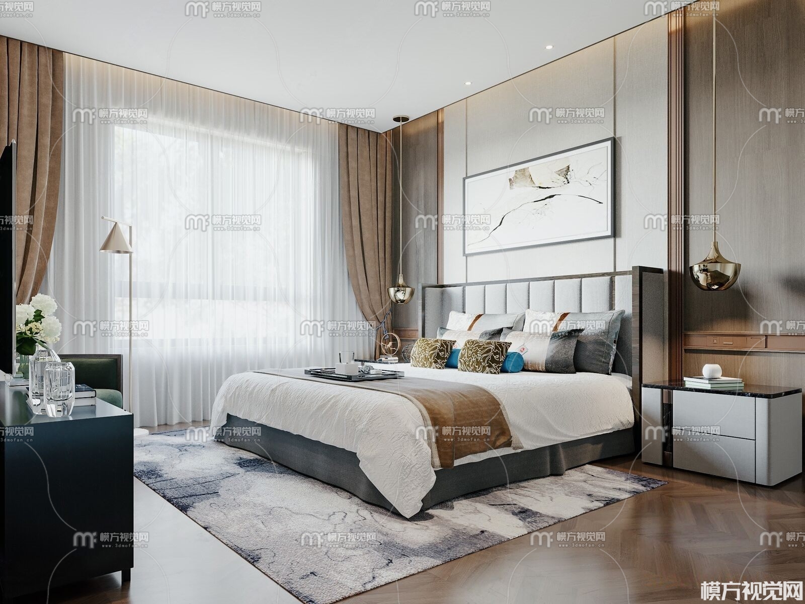 新中式卧室3D模型(ID:0003583)